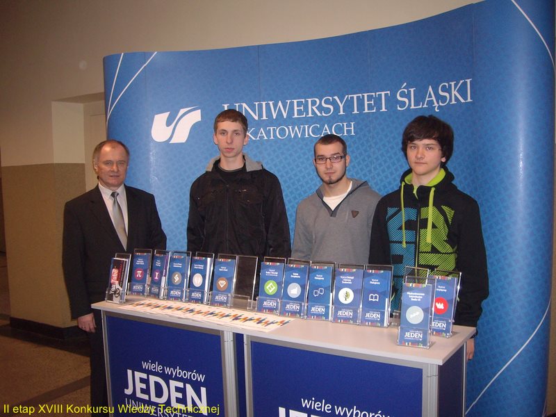 reprezentowali naszą szkołę w  II etapie XVIII Konkursu Wiedzy Technicznej, który odbył się 19 marca na Wydziale Informatyki i Nauki o Materiałach Uniwersytetu Śląskiego w Sosnowcu.