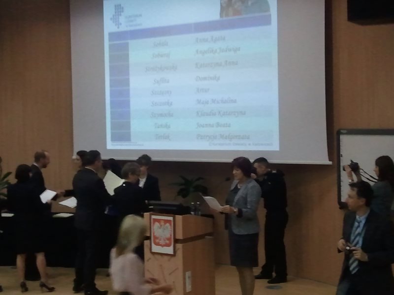 Dyplomy i listy gratulacyjne wręczyli stypendystom Sekretarz Stanu w Ministerstwie Finansów pani poseł Izabela Leszczyna oraz Śląski Kurator Oświaty Stanisław Faber.
